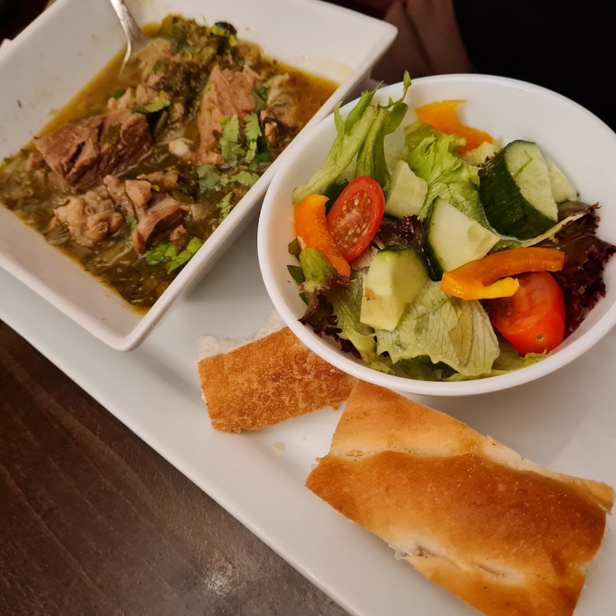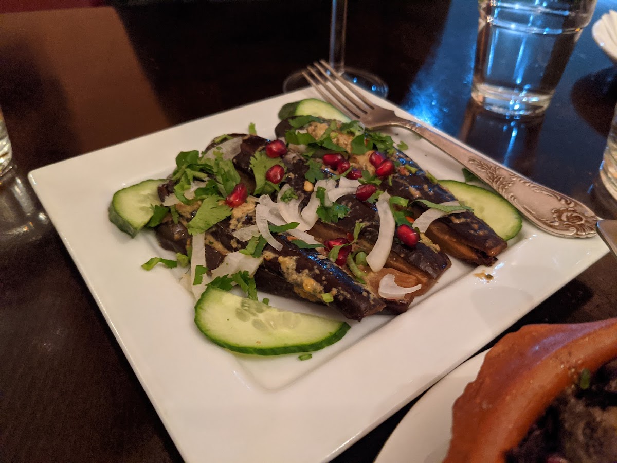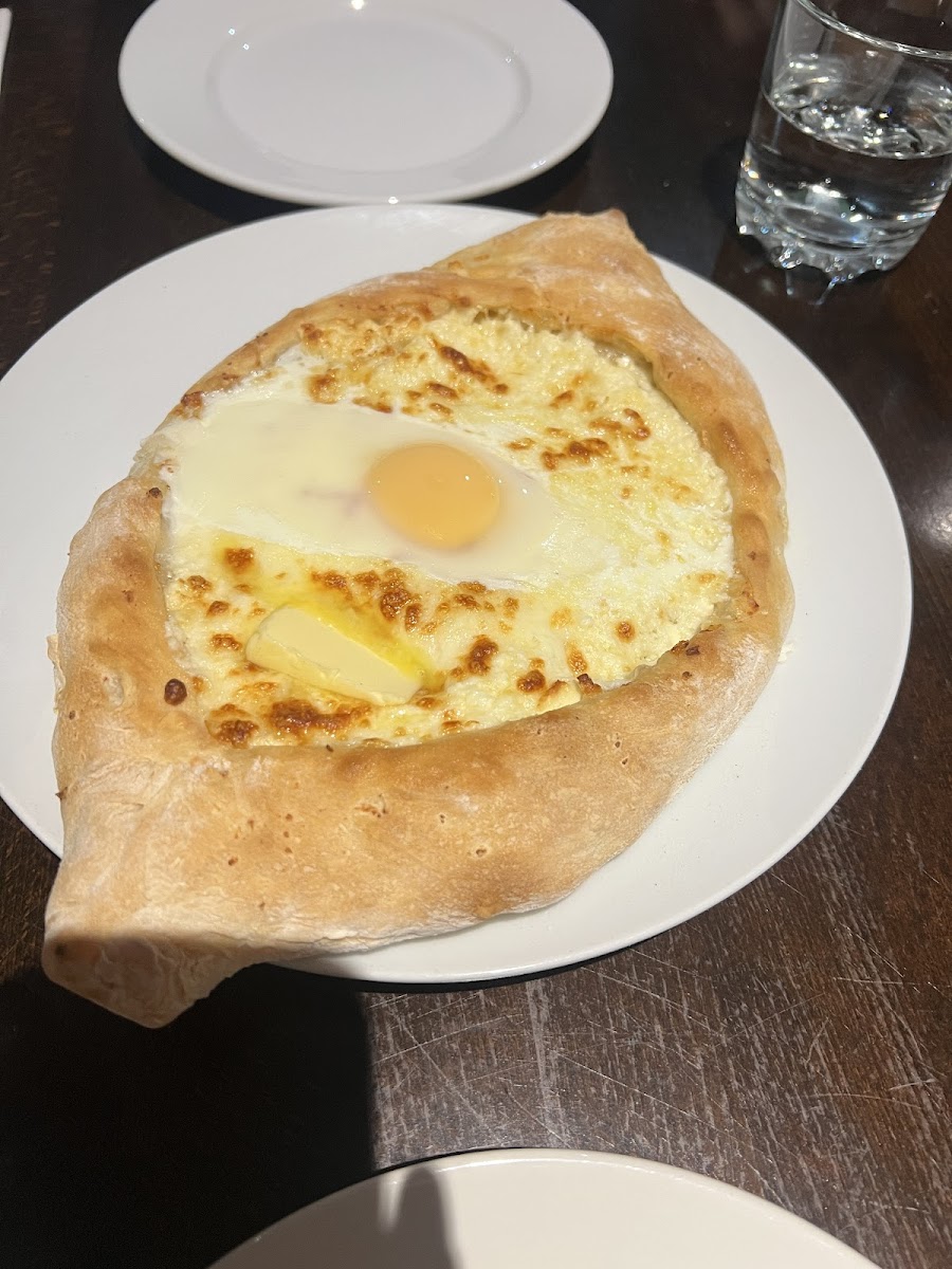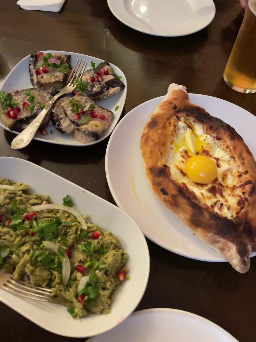 “Food writer Jonathan Nunn had written about this place and I had it saved for a really long time and finally got a chance to try it! This is definitely a hidden gem! Absolutely delicious food made with the freshest ingredients! We started with the Badrijani and Khachapuri. My husband normally can't stand eggplants but I was really eager to try this dish. However, he enjoyed it so much he ate half of it!! Can't really go wrong with bread filled with cheese and I highly highly recommend this! For the main course we ordered the Satsivi. This chicken dish had the most incredible sauce and was very flavorful and really just called for some bread to mop it up with. However it was served with a rice cauliflower dish which just had an off-putting texture for us. It was a little more dense than I had imagined and I thought it was going to be more fluffy like cauliflower rice. We also ordered the lamb stew called Chakapuli. This one was served with a salad and some bread. Lamb was soft and succulent. The broth was incredibly herbaceous and very comforting on a cold day. Highly recommend! We didn't get any dessert on this visit but I do hope they offer more traditional baked Georgian goods cuz I would love to try those. The service was quick and the restaurant was incredibly clean and warm and inviting. Definitely going to come back!”